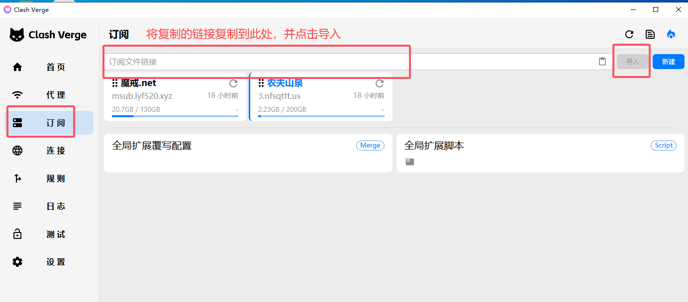 购买节点后,会获得一个订阅地址,复制到C*l*a*s*h的订阅地址栏,点击“导入”
